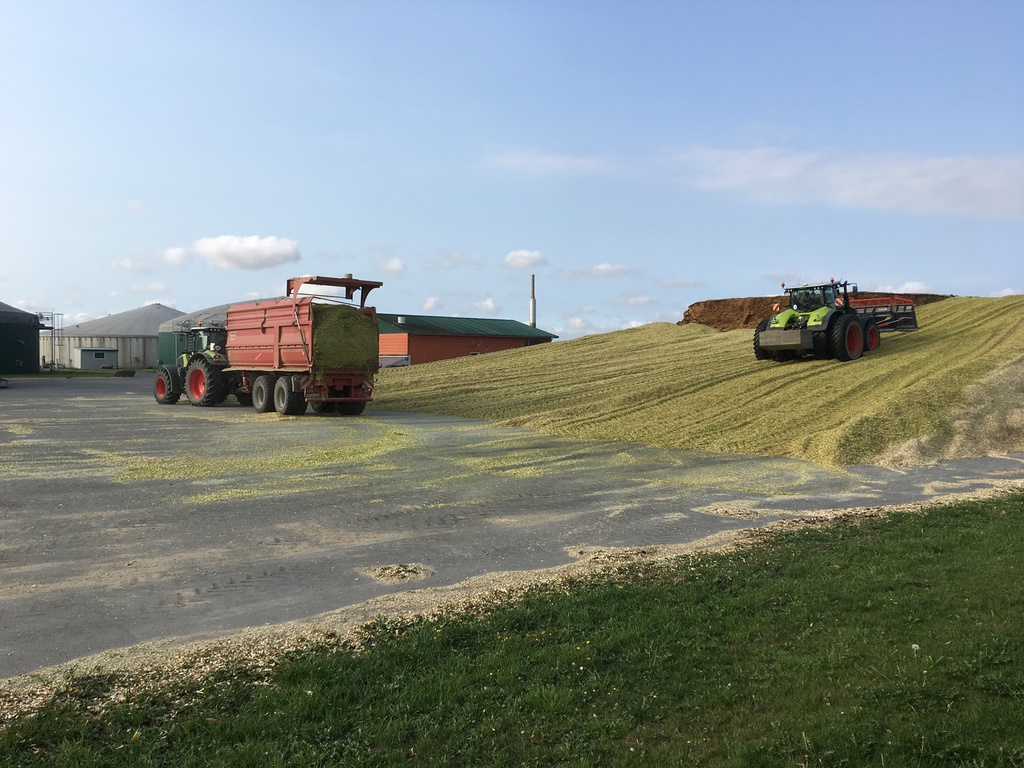 Die Siloplatten werden gefegt, Silofolie, Silosäcke und die Vogelschutznetze werden bereit gelegt. So können wir uns während der Ernte auf die Arbeit konzentrieren und Schritt für Schritt diese Arbeitsspitze bewältigen.